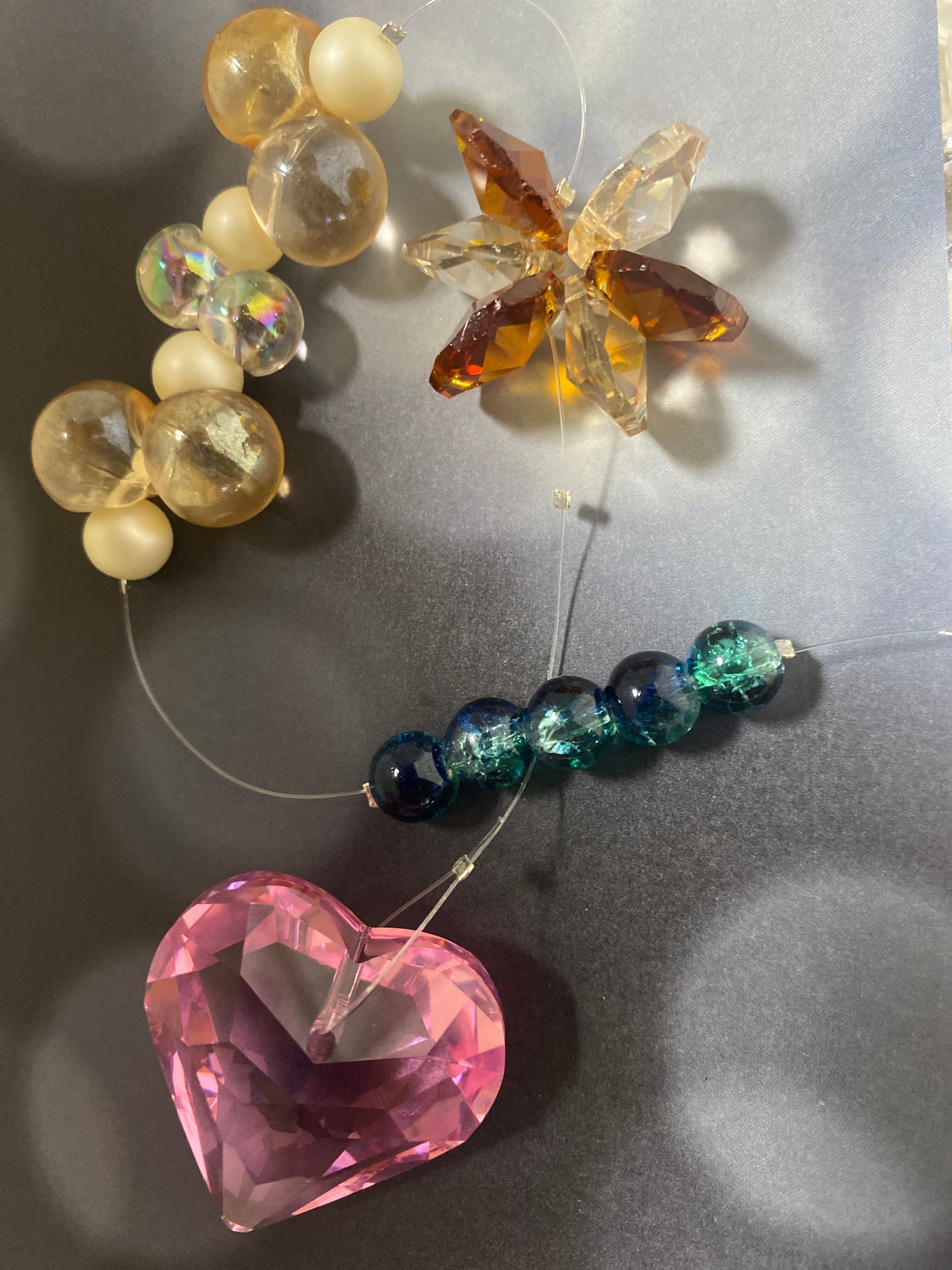 手作り感あふれるこのサンキャッチャーは、ひとつひとつ異なる表情を持っており、それぞれが特別な品です。一点物商品となっております。