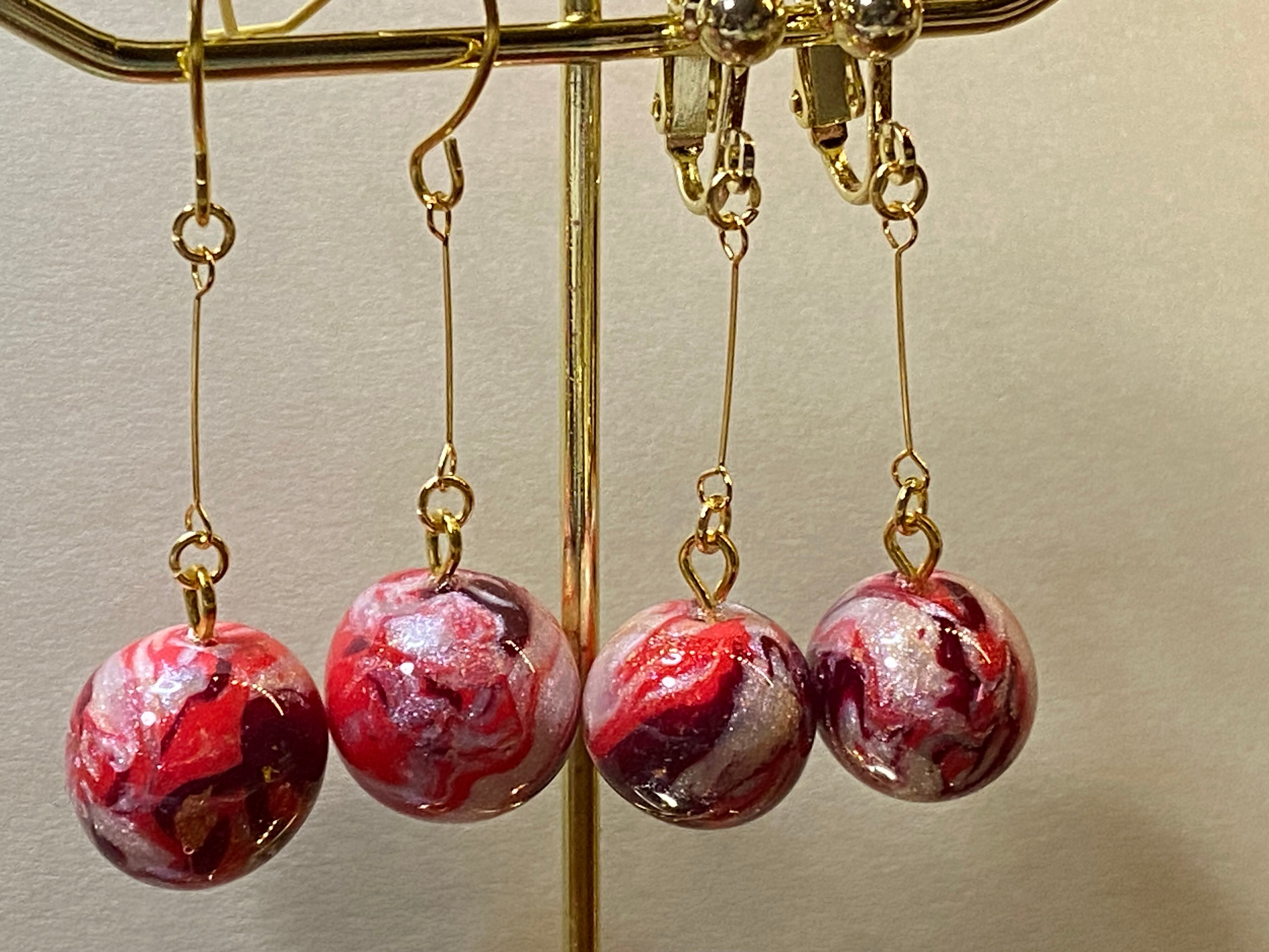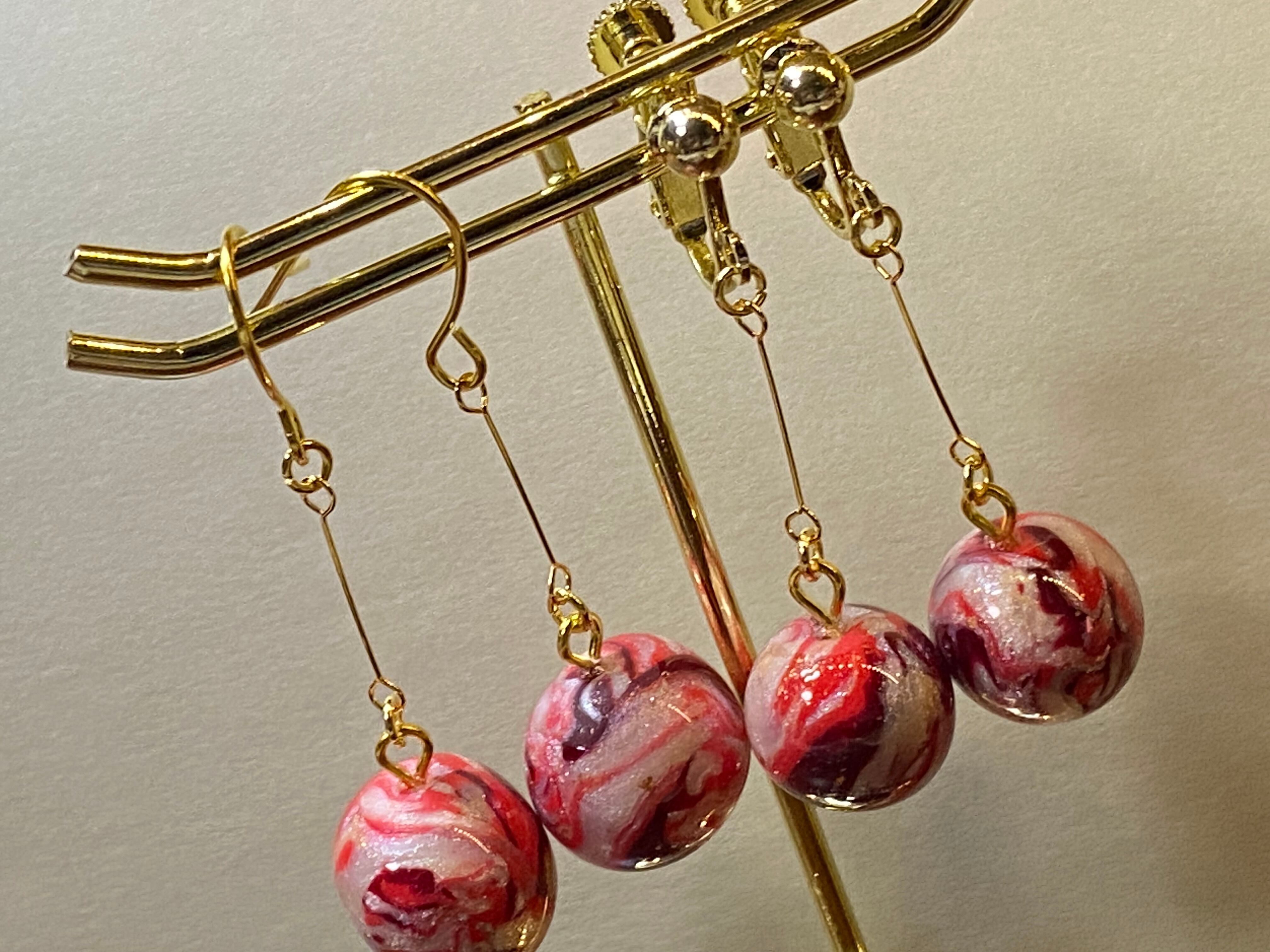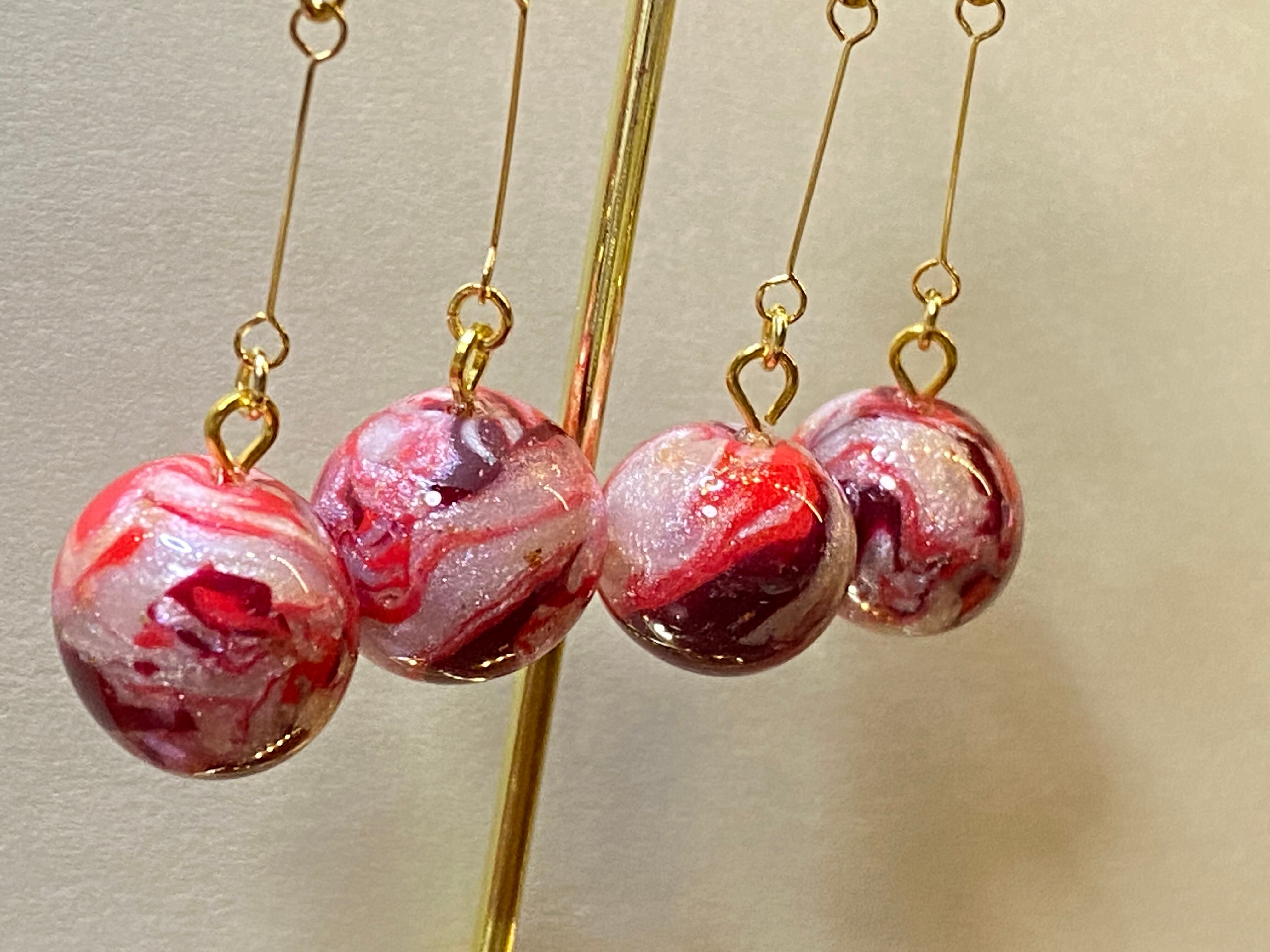 愛を込めて作られた「Love round」。まるい形状が特徴的で、赤、白、紫のカラーをMIXして制作したオリジナルカラー。手に持つだけで心が温かくなり、幸せな気持ちに満たされそう。小さな存在ながらも、愛情を込めて丁寧に作られたポリマークレイのアクセサリーです。