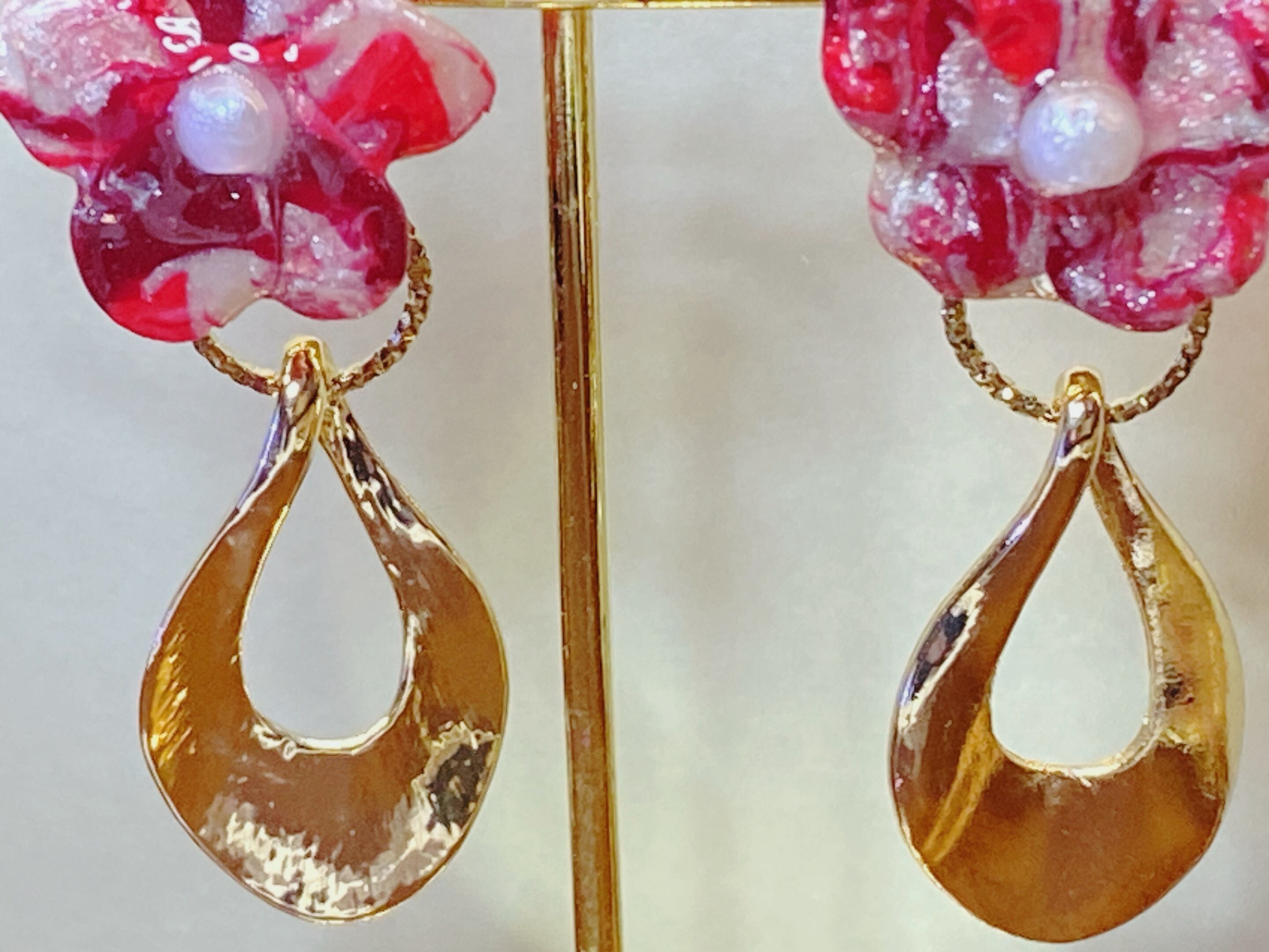 愛を込めて作られた「Love flower」。手ごねで花を制作。赤、白、紫のカラーをMIXして制作したオリジナルカラー。手に持つだけで心が温かくなり、幸せな気持ちに満たされそう。小さな存在ながらも、愛情を込めて丁寧に作られたポリマークレイのアクセサリーです。