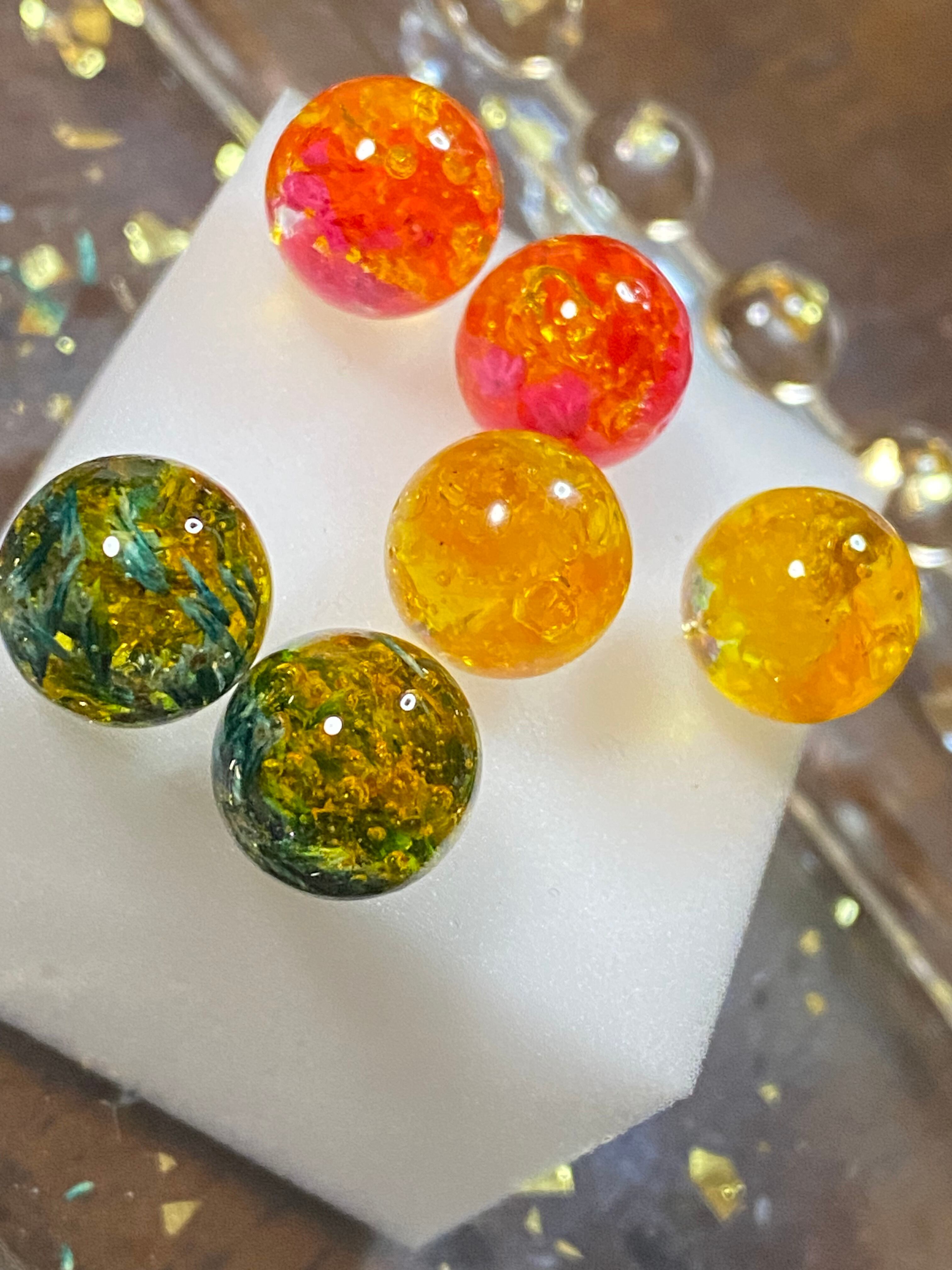 カラフル1粒ピアスは、華やかで可愛らしいアクセサリーです。ドライフラワーのかすみ草と、カスピアを封入したレジン素材で作られたカラフルな1粒ピアスは、まるで春の花畑をイメージさせます。手作りのため、1つ1つ表情が異なり、どれもオリジナリティ溢れる仕上がりになっています。