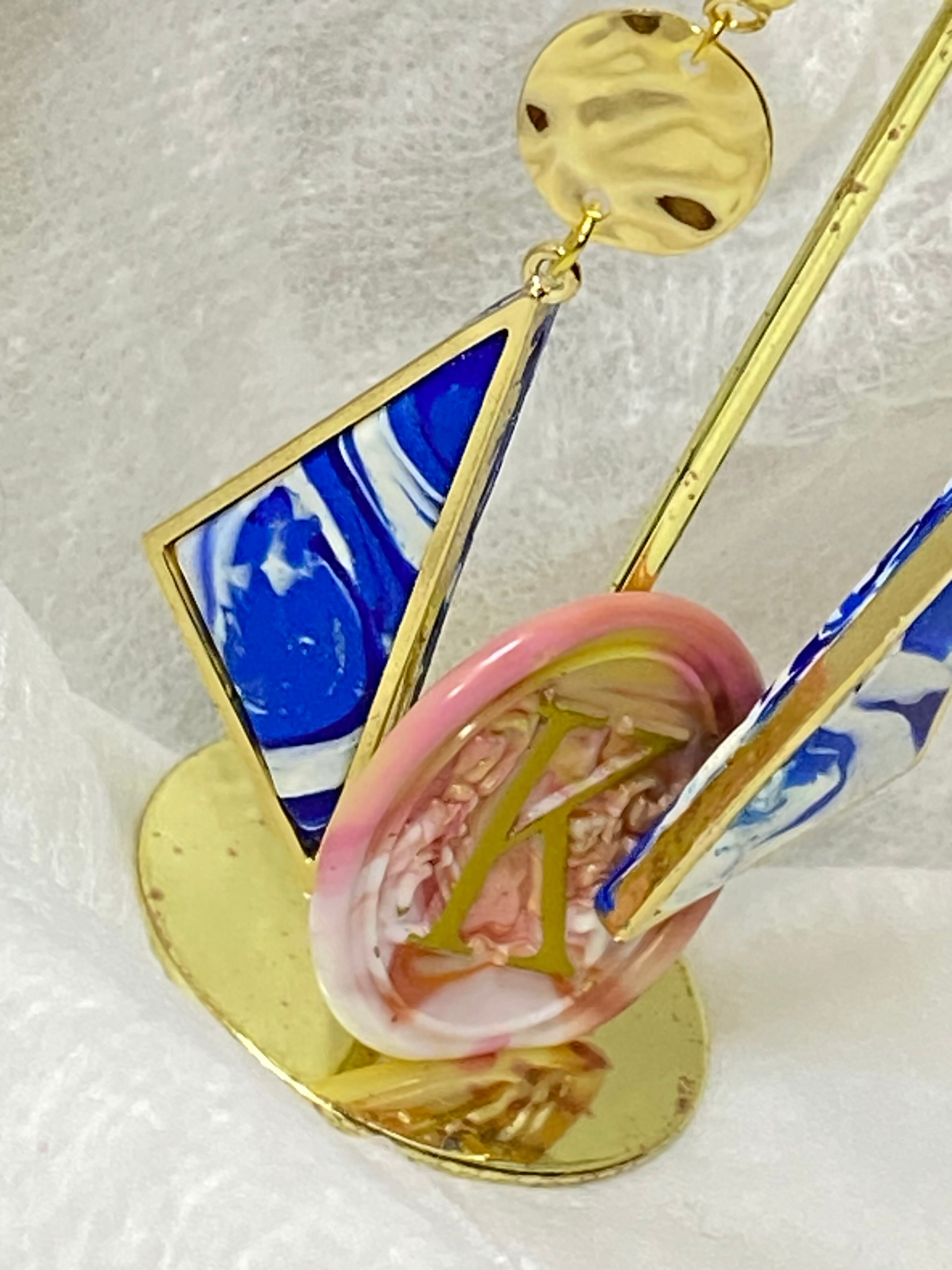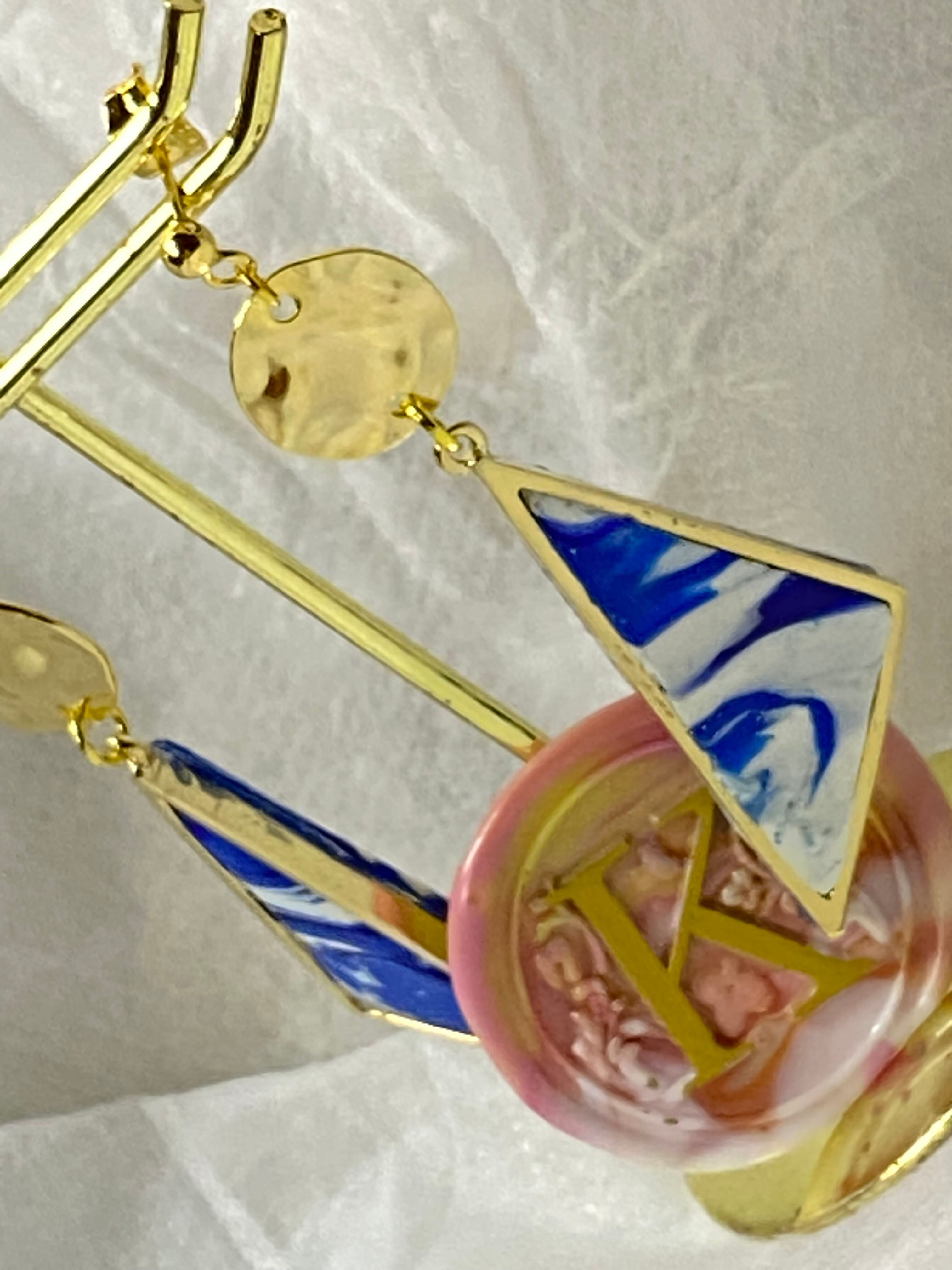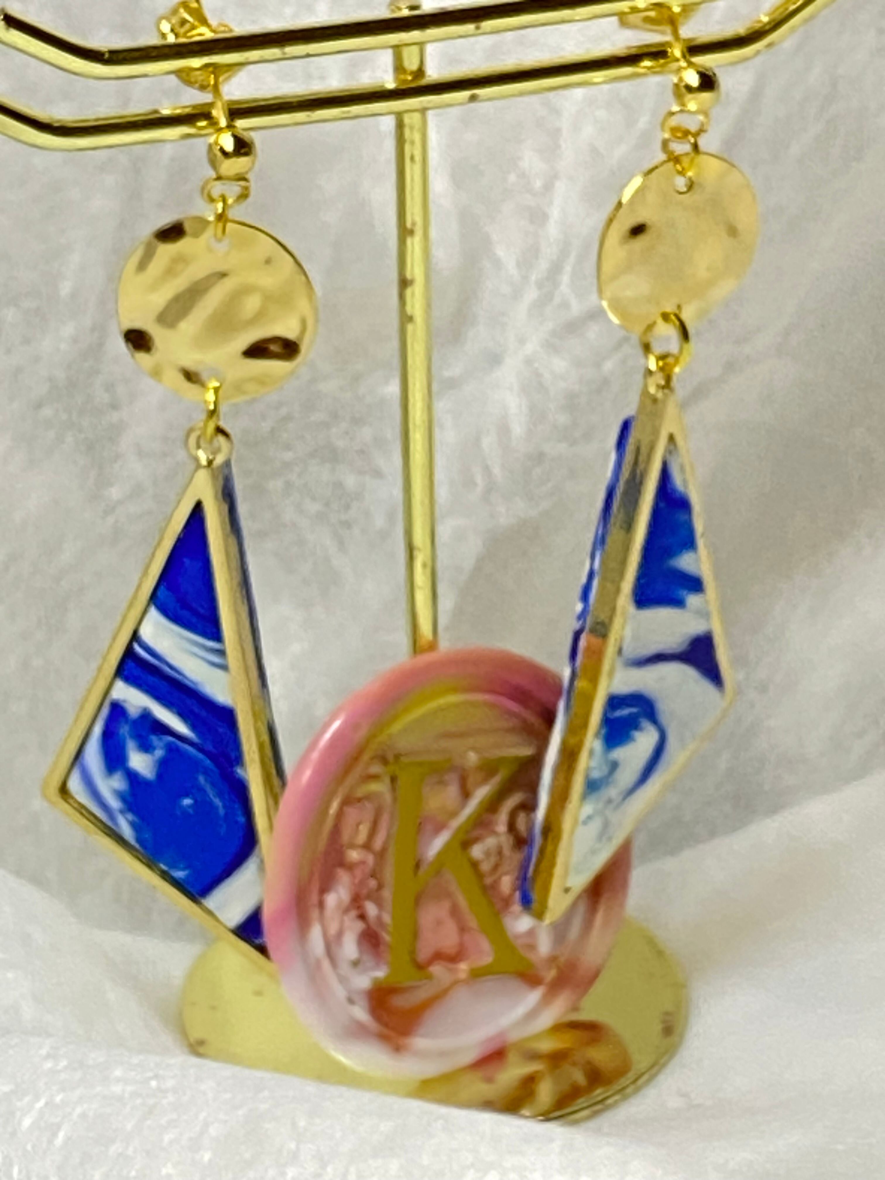 この一点物のトライアングルは、独自のデザインと色合いが魅力的です。ポリマークレイ製なので軽量で、長時間身に着けていても疲れにくく、毎日のアクセサリーとしておすすめです。青と白のコントラストが美しいので、どんなファッションスタイルにもマッチし、さまざまなシーンで活躍してくれます。唯一無二の存在感を放つトライアングルは、あなたのおしゃれを引き立てること間違いなしです。