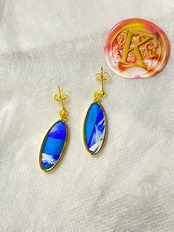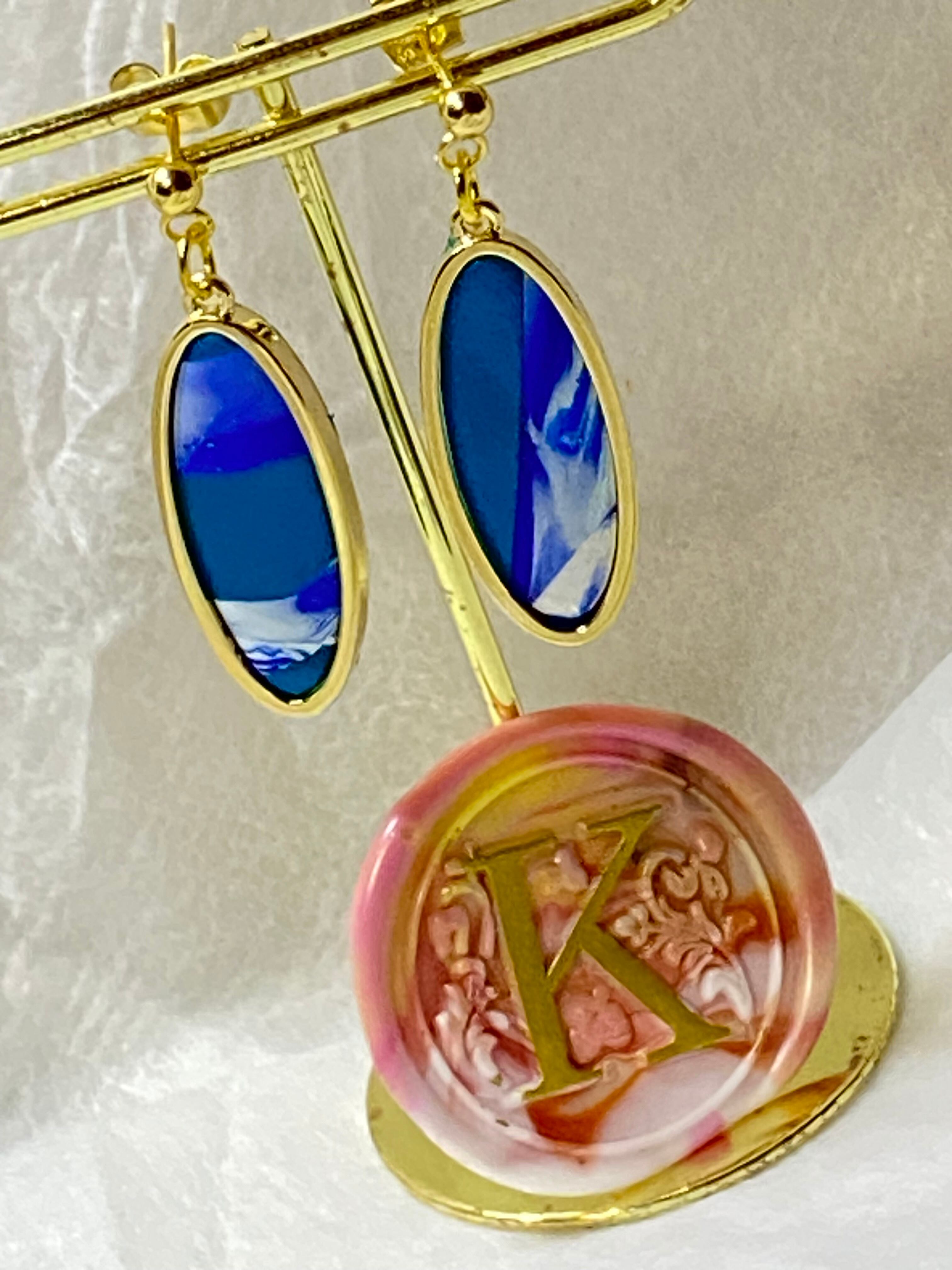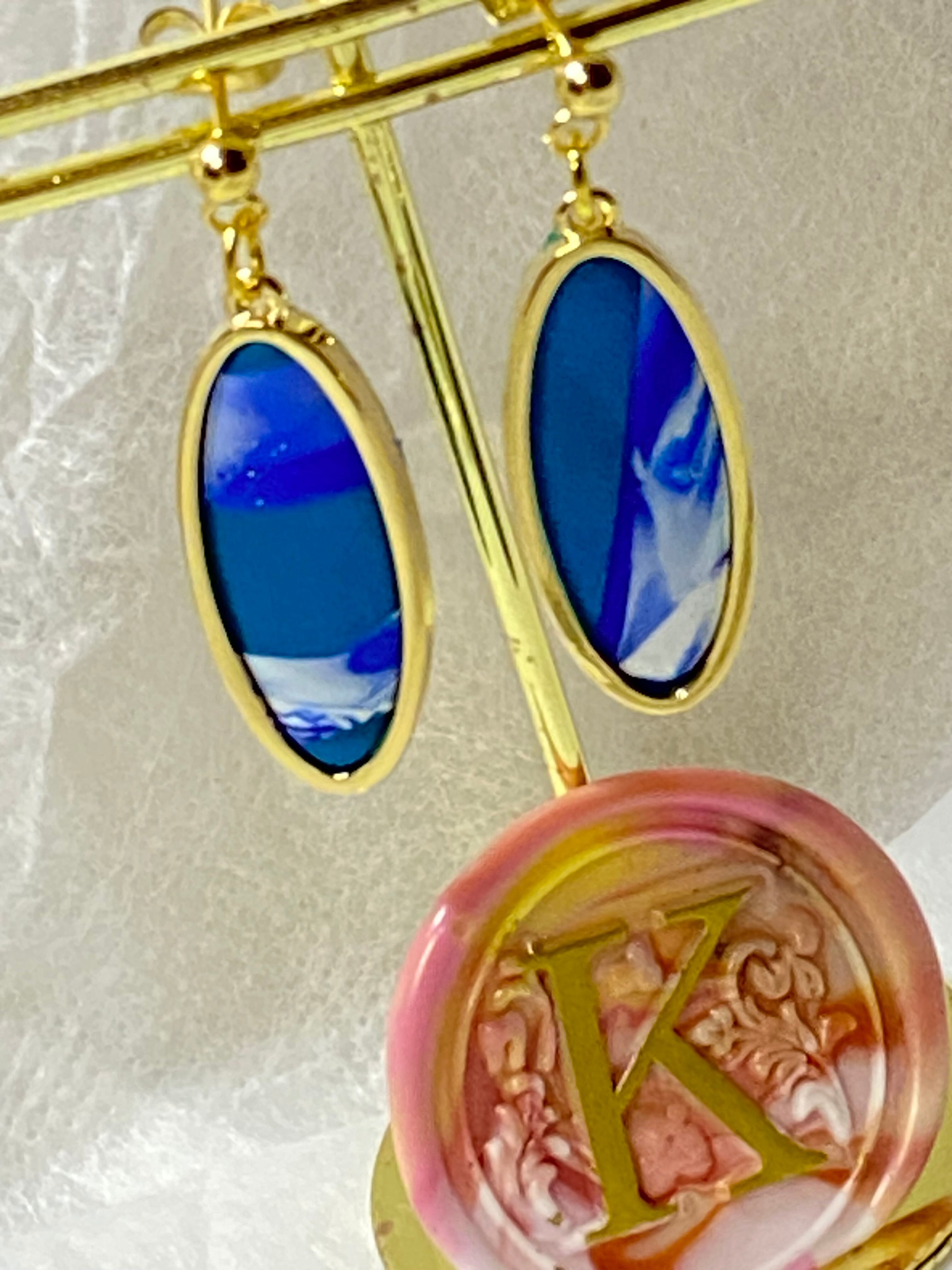 Ovallは、一点物のオーバルフレームが特徴のアクセサリーです。ポリマークレイで作られた青と白のコントラストが美しいデザインは、どんなコーディネートにも華やかさをプラスしてくれます。手作りの一点物なので、他とは違った個性を演出することができます。